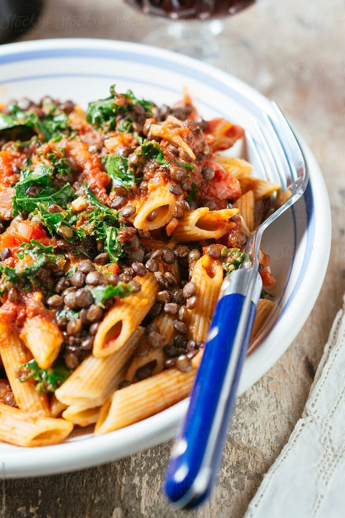 Vegane Belugalinsen-Bolognese proteinreich . für Sportler ideal